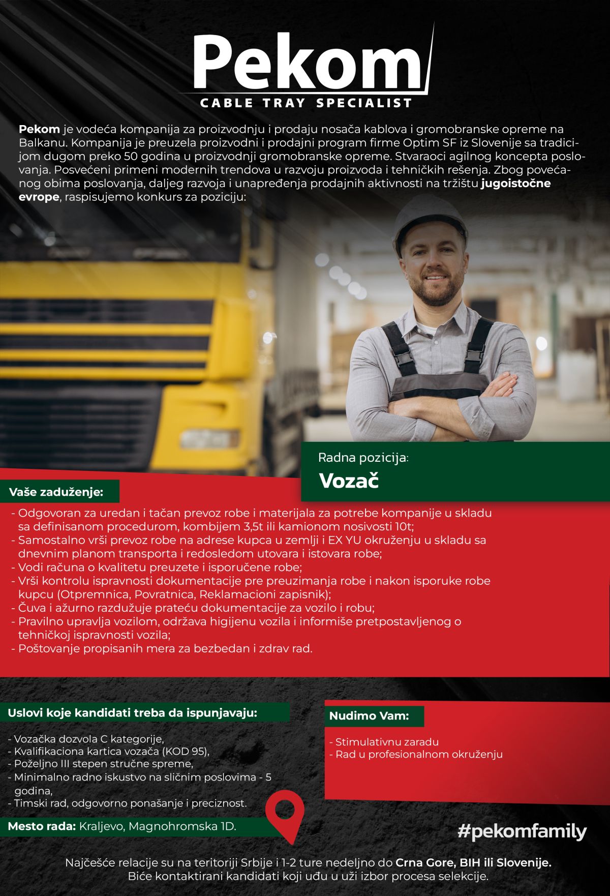 Napomena: Poslovi.infostud.com ne vrši posredovanje u zapošljavanju u Srbiji, niti u inostranstvu. Postupak selekcije i odabira kandidata je u nadležnosti poslodavca, a odredbe ugovora o radu predstavljaju direktan dogovor između poslodavca i zaposlenog. Svi pojmovi u oglasima, koji su upotrebljeni u muškom rodu, odnose se bez diskriminacije i na osobe ženskog pola i obrnuto, osim ukoliko specifičnim zahtevima posla nije drugačije propisano.