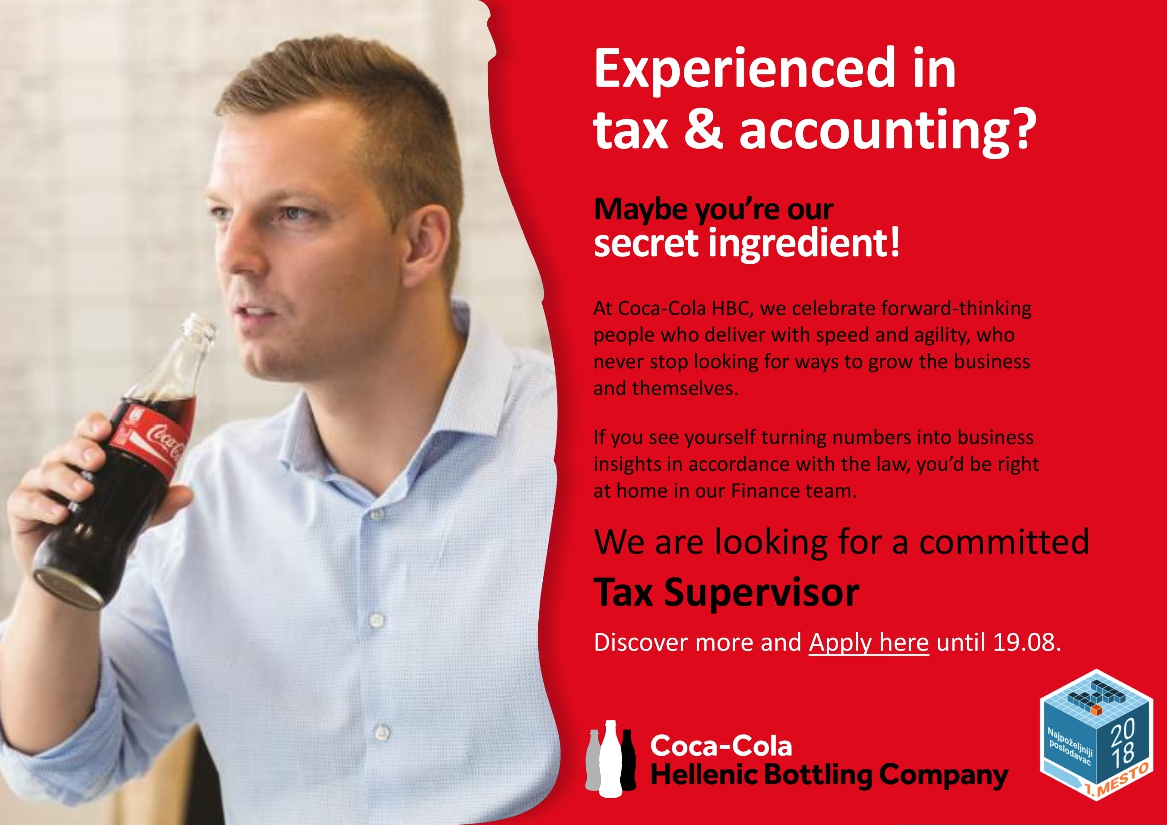 Da li znaš koje je najpoznatije piće na svetu? Da li znaš koje piće ima najprepoznatljiviji ukus koji je identičan u svakom kutku planete? Da li znaš koji brend postoji preko 130 godina i ima najprepoznatljiviju flašicu na svetu? Da li znaš koji brend prepoznaje 95% svetske populacije? U pitanju je, naravno, Coca-Cola brend! Coca-Cola HBC je treća najveća punionica Coca-Cola proizvoda na svetu. Snabdevamo pićem više od 580 miliona ljudi kroz 28 zemalja na tri kontinenta. 2018. godine proglašeni…