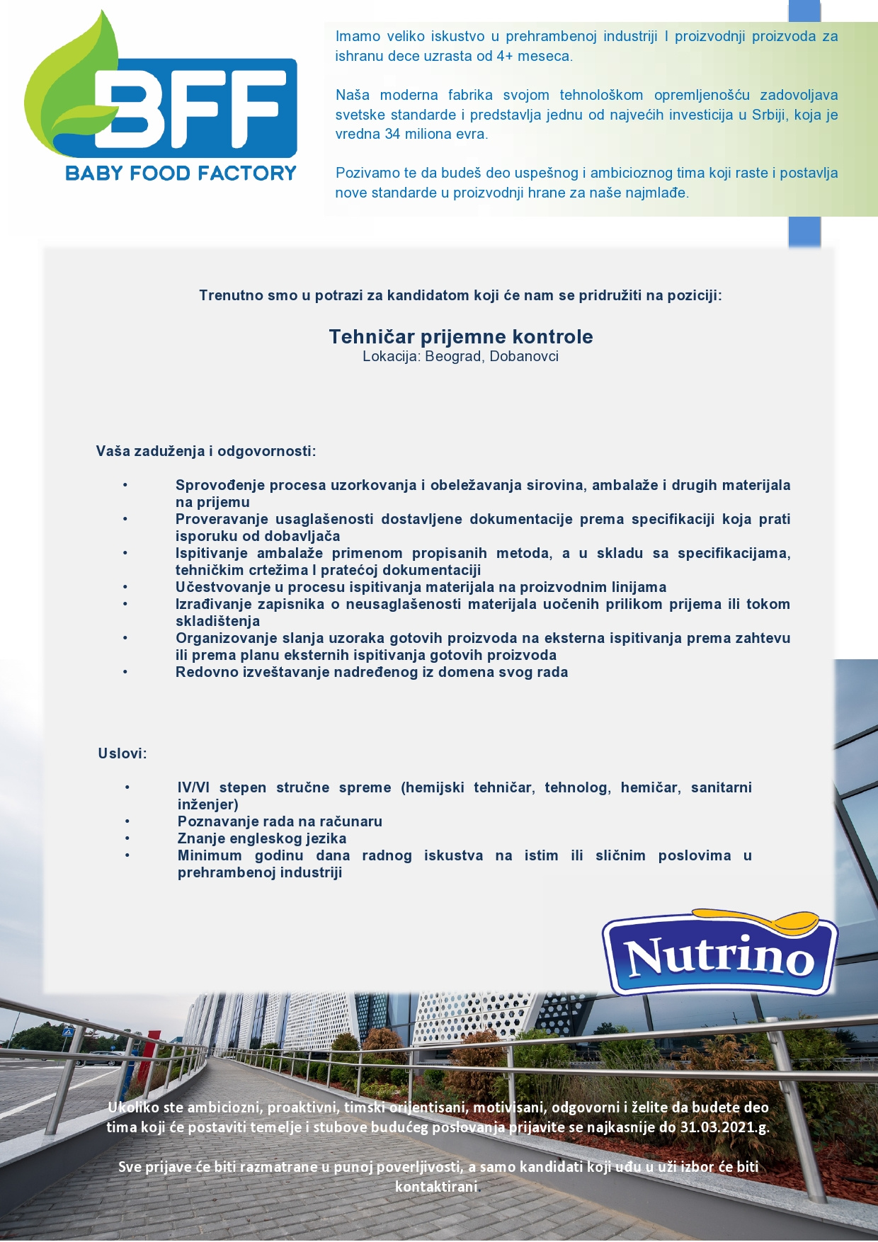 Mi smo Baby Food Factory i briga o pravilnoj i zdravoj ishrani cele porodice je jedan od naših najvažnijih zadataka - podržavamo zdrav razvoj i zdrave životne navike svih generacija. Naš fokus je na stvaranju sveobuhvatnog iskustva za naše zaposlene, kako bi ostvarili svoj pun potencijal i aktivno učestvovali u oblikovanju budućnosti naše kompanije. Zbog toga negujemo kulturu koja ne samo podržava, već i promoviše kontinuirano učenje i inovacije. NAŠA SVRHA je da podržimo zdrav razvoj i zdrave…