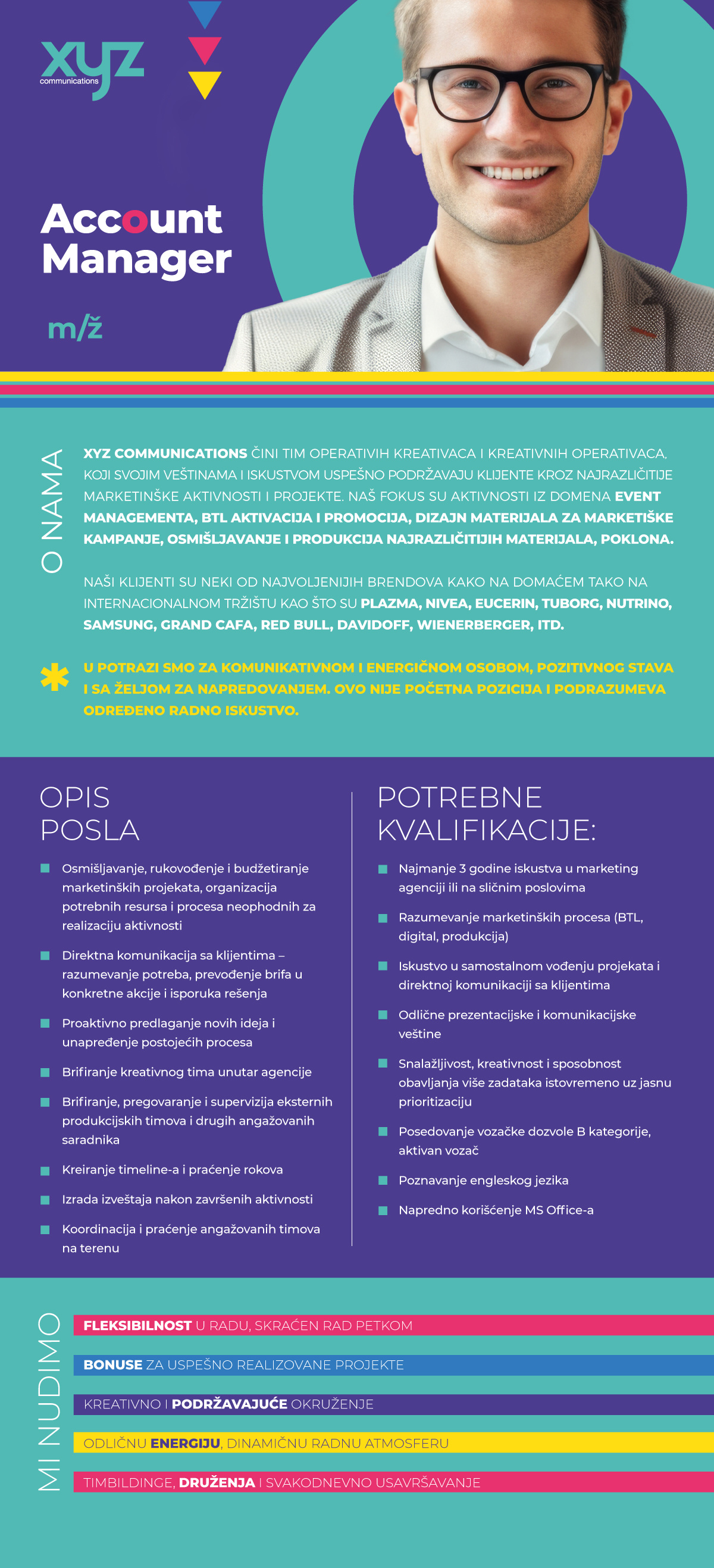 XYZ Communications čini tim operativih kreativaca i kreativnih operativaca, koji svojim veštinama i iskustvom uspešno podržavaju klijente kroz najrazličitije marketinške aktivnosti i projekte. Naš fokus su aktivnosti iz domena event managementa, BTL aktivacija i promocija, dizajn materijala za marketiške kampanje, osmišljavanje i produkcija najrazličitijih materijala, poklona. Postojimo od 2017. godine i iz godine u godinu beležimo veliki rast kako poslovnih rezultata tako i broja zaposlenih i…