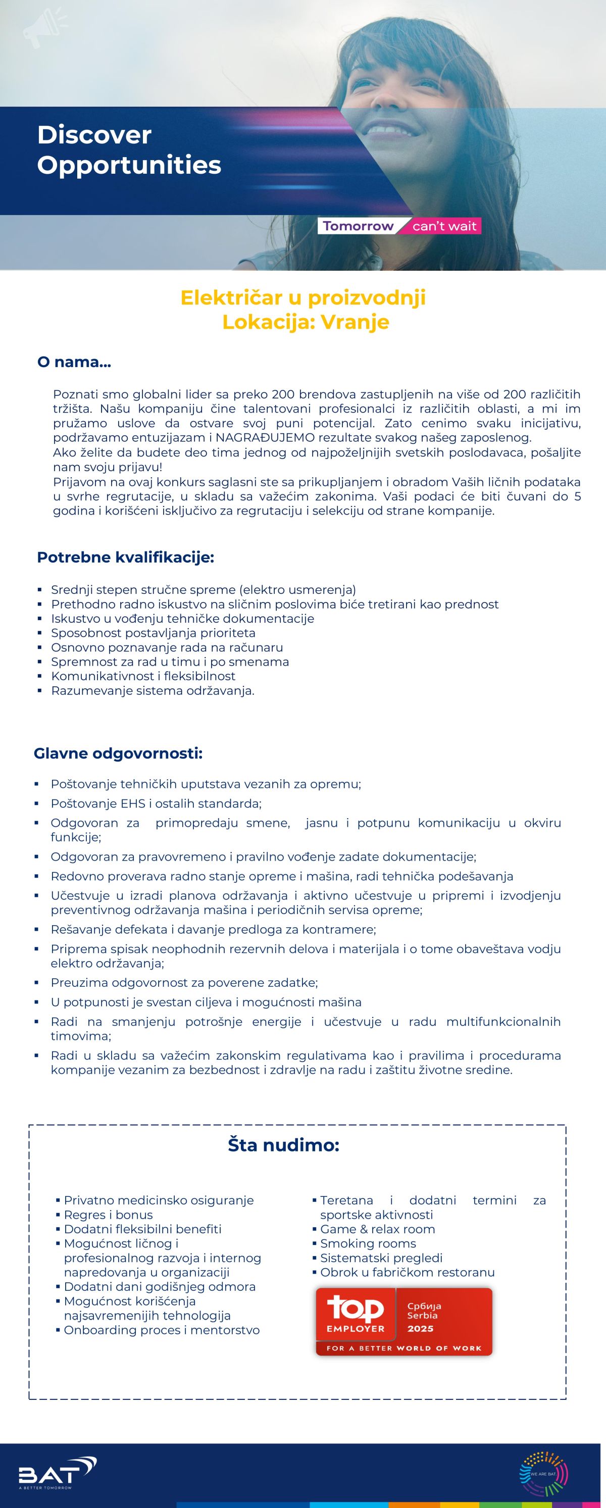 Napomena: Poslovi.infostud.com ne vrši posredovanje u zapošljavanju u Srbiji, niti u inostranstvu. Postupak selekcije i odabira kandidata je u nadležnosti poslodavca, a odredbe ugovora o radu predstavljaju direktan dogovor između poslodavca i zaposlenog. Svi pojmovi u oglasima, koji su upotrebljeni u muškom rodu, odnose se bez diskriminacije i na osobe ženskog pola i obrnuto, osim ukoliko specifičnim zahtevima posla nije drugačije propisano.
