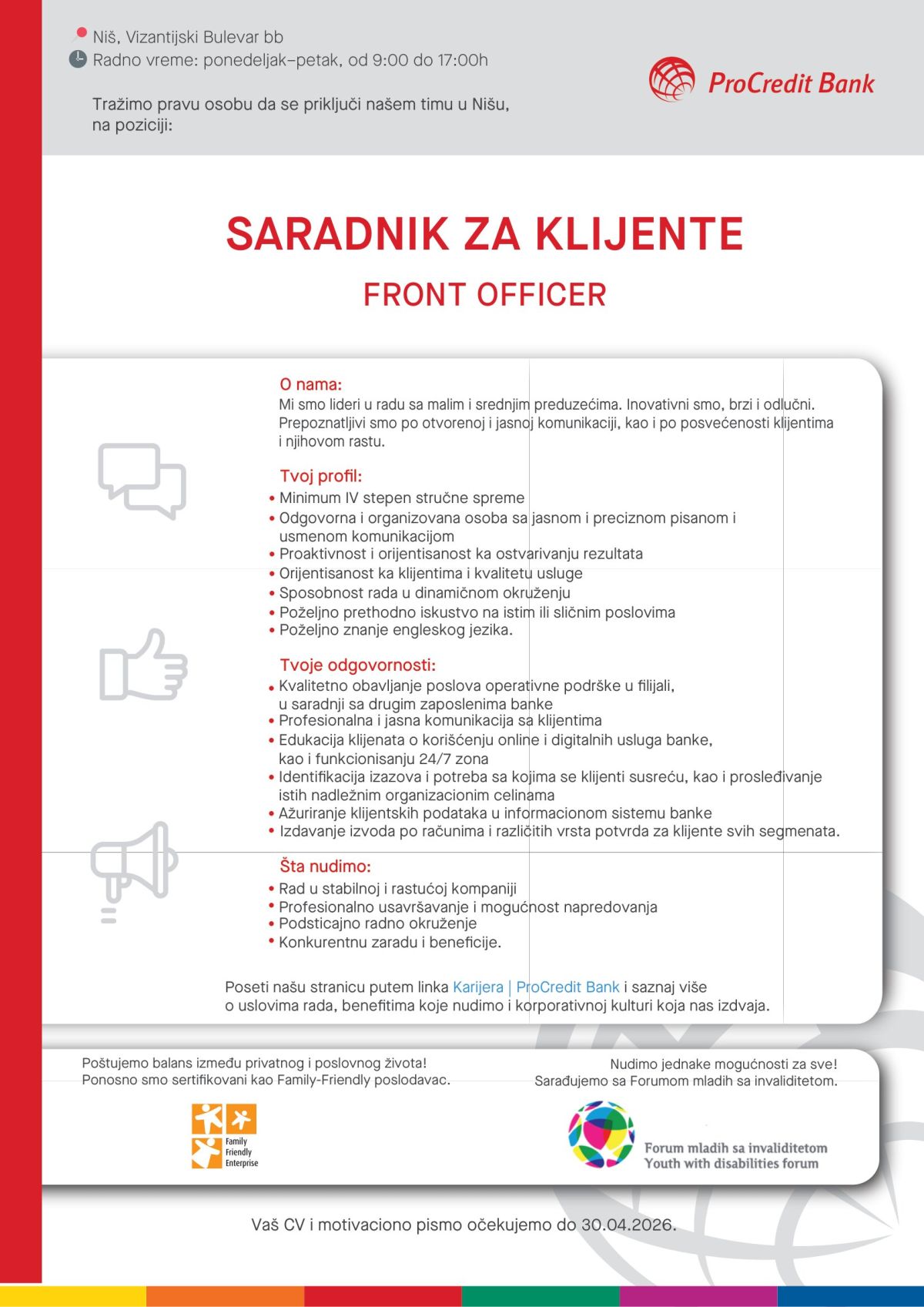 ProCredit banka je po mnogo čemu specifična i nije tipična banka.  To ćeš uvideti nakon što pročitaš redove koji slede. Dozvoli nam da se predstavimo, a nadamo se da ćemo imati priliku i da se upoznamo. Koji su naši principi? Verujemo da jedino kroz transparentnu komunikaciju, kako sa klijentima, tako i interno, možemo da postignemo uspešno poslovanje i stvorimo zdravo radno okruženje u kom se svaki zaposleni razvija i oseća prijatno.  U odnosu sa…