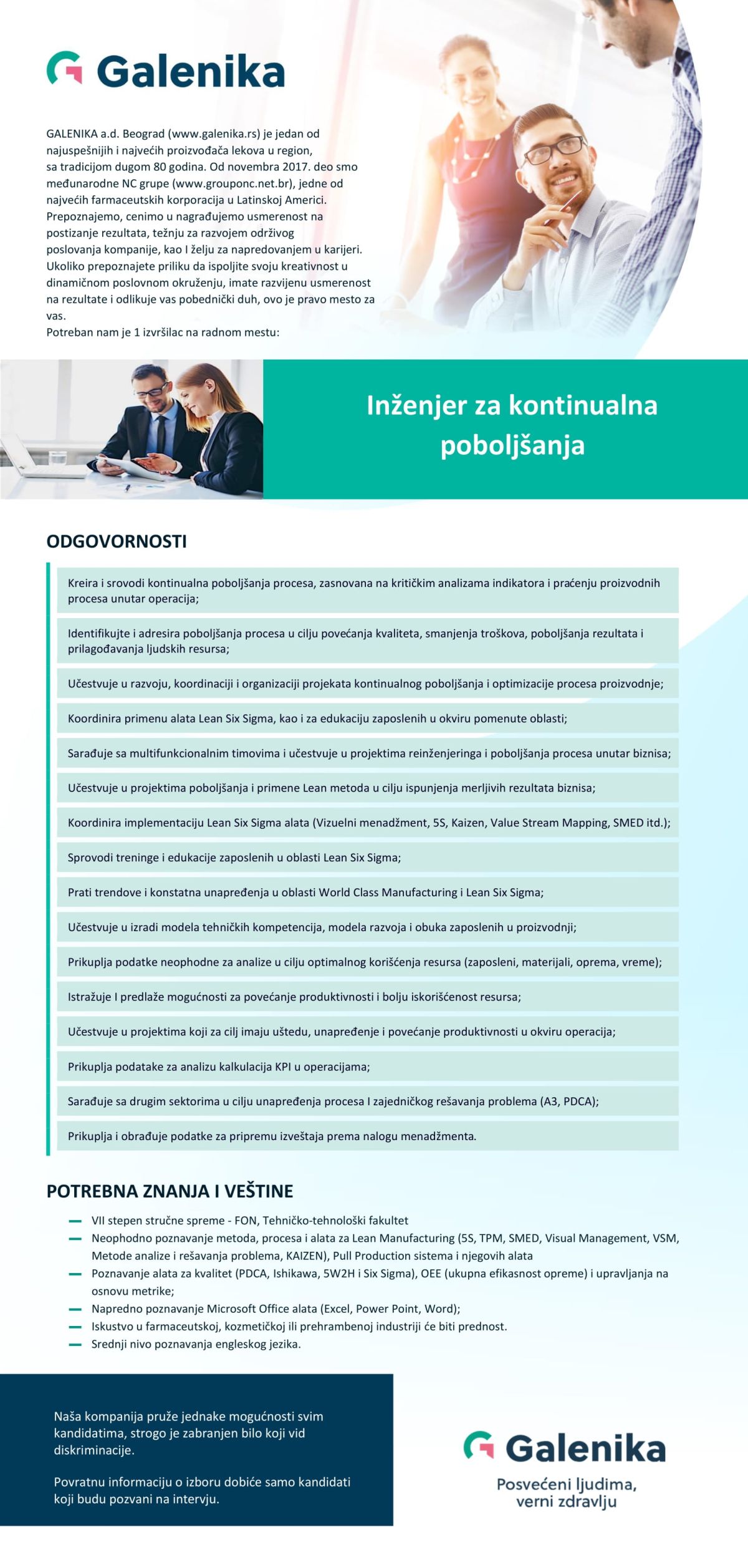 Napomena: Poslovi.infostud.com ne vrši posredovanje u zapošljavanju u Srbiji, niti u inostranstvu. Postupak selekcije i odabira kandidata je u nadležnosti poslodavca, a odredbe ugovora o radu predstavljaju direktan dogovor između poslodavca i zaposlenog. Svi pojmovi u oglasima, koji su upotrebljeni u muškom rodu, odnose se bez diskriminacije i na osobe ženskog pola i obrnuto, osim ukoliko specifičnim zahtevima posla nije drugačije propisano.