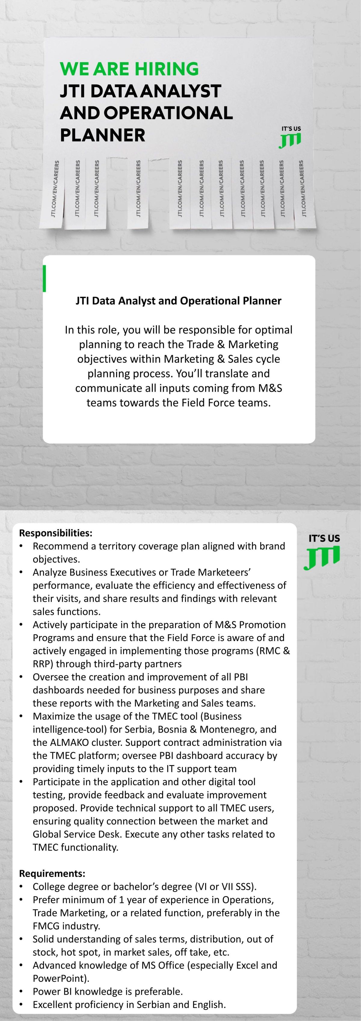 JTI Data Analyst and Operational Planner