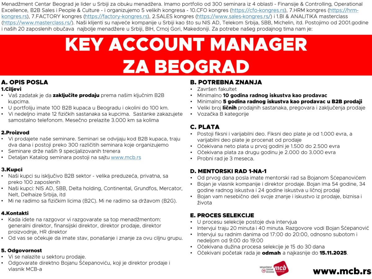 Menadžment Centar Beograd je broj 1 u razvoju menadžera u Srbiji.  Osnovani smo 2001.godine i sa 25 zaposlenih najveća smo kompanija za obuku menadžera u Srbiji.  Naši klijenti su najbolje kompanije u Srbiji i regionu: Telekom Srbija, NIS AD, Hemofarm, Carlsberg, Apatinska pivara, SBB, DDOR Novi Sad, itd Naši proizvodi su: obuke zaposlenih konsalting kongresi Poslujemo kroz četiri divizije:  Finansije & Controlling Factory Prodaja & Pregovaranje Soft skills Naši strateški…