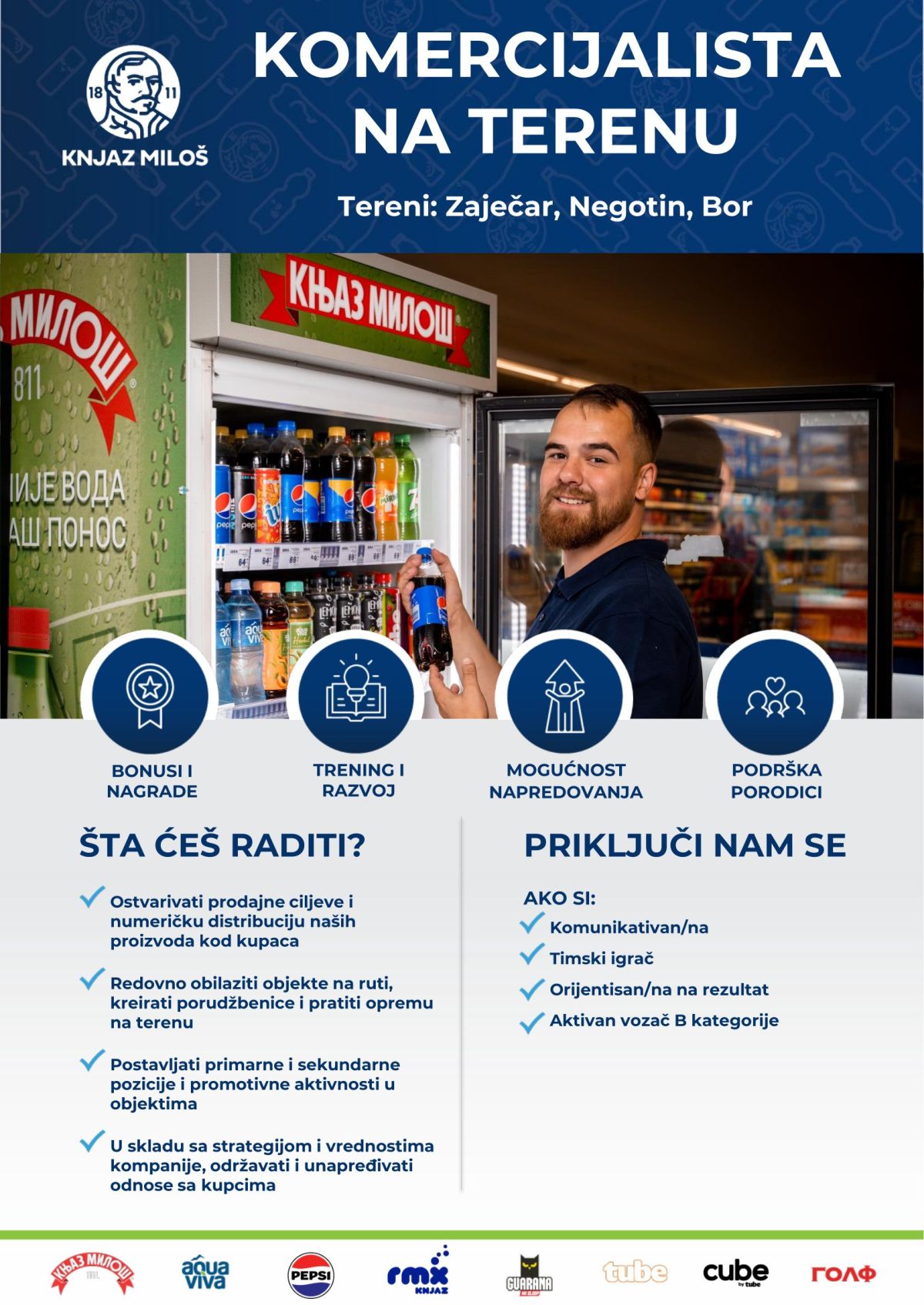 Mi smo Knjaz Miloš. Ponosno autentični i fokusirani na druge. Jedan smo od najvećih proizvođača mineralne vode, bezalkoholnih i energetskih napitaka u regionu. Razvijamo, proizvodimo i plasiramo na tržište napitke vrhunskog kvaliteta koji potrošačima pružaju vitalnost, osveženje i energiju svakog dana. Brinemo o drugima, sagledavamo stvari i „iz tuđih cipela“, vodeći se činjenicama i empatijom. Sve to, na temeljima imena i tradicije duže od dva veka, sa jasnom vizijom budućnosti. Gradimo…