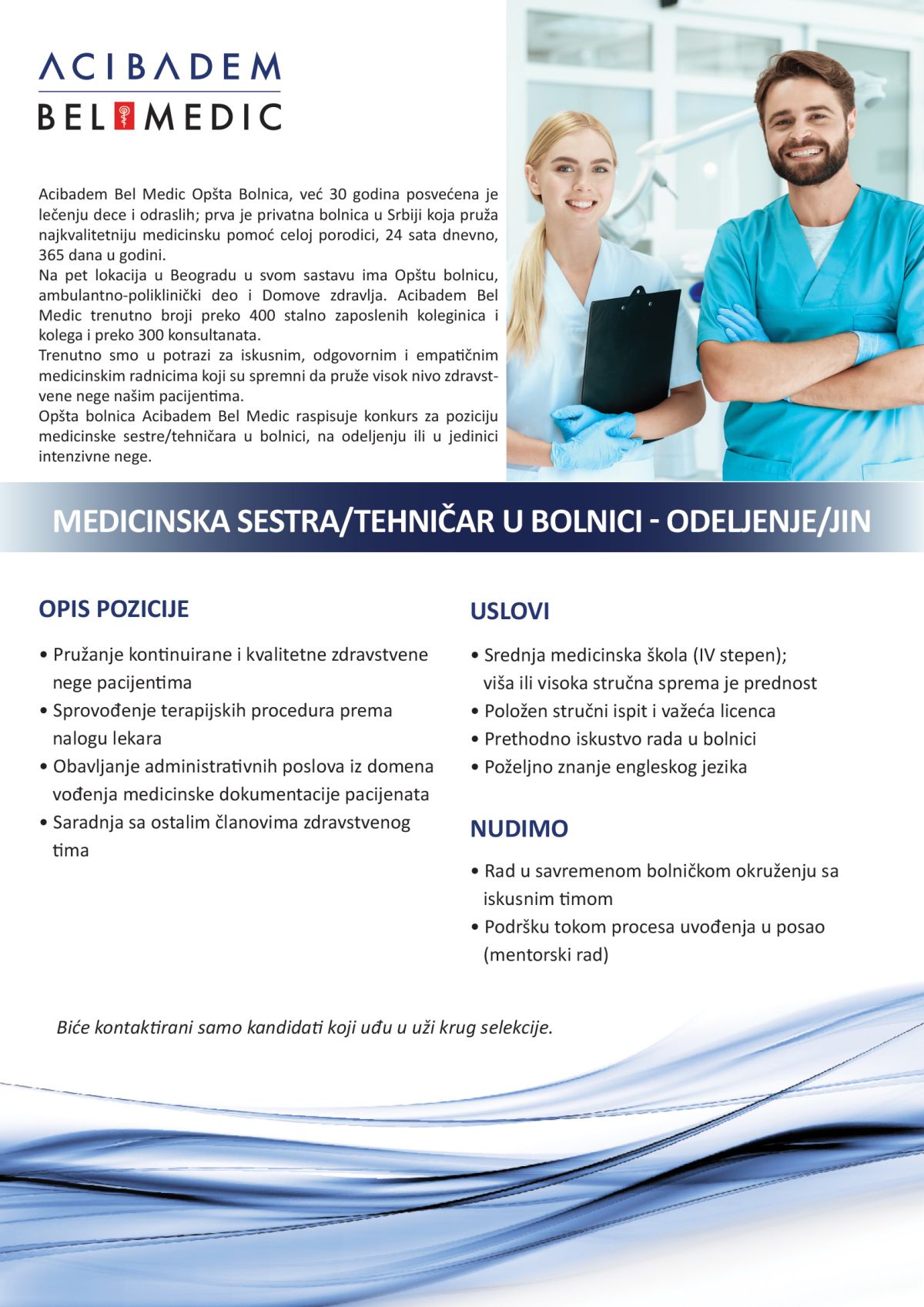 Medicinska sestra/tehničar u bolnici - odeljenje/JIN