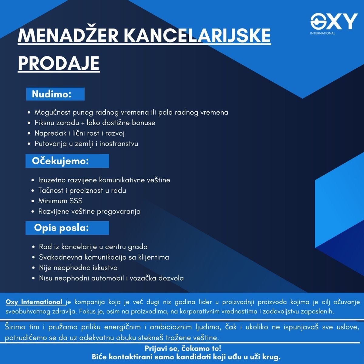 Oxy International je brzorastuća internacionalna kompanija. Italijanski brend posvećen kreiranju visokokvalitetnih i inovativnih proizvoda, koji poboljšavaju zdravlje i dobrobit naših kupaca. Kompanija ima cilj da olakša svakodnevni život kroz revolucionarne novitete i najkvalitetnije proizvode. Naš glavni fokus je na kulturi kompanije, zaposlenima, korporativnim vrednostima i zdravstvenim prednostima naših proizvoda.