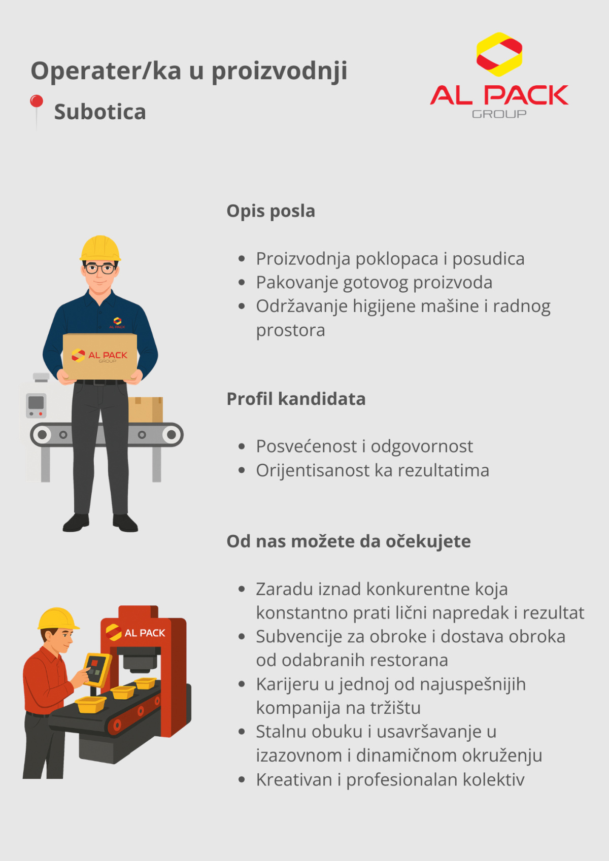 Al Pack d.o.o. iz Subotice, kao matična kompanija Al Pack grupe, ima svoj ekspanzivan tok poslovanja proko 30 godina u kojem je postepeno razvijala svoju infrastrukturu, tehnologiju i stručan kadar. Od osnivanja 1994. godine, rame uz rame s svojim kupcima, kreće se ka budućnosti sa naprednim proizvodima i inovativnim idejama. Godine 2007. uspešno je preuzela fabriku za mašinsku obradu metala koja prerasta u odgovornu i samostalnu kompaniju Metal Engineering Production, sa sedištem u…