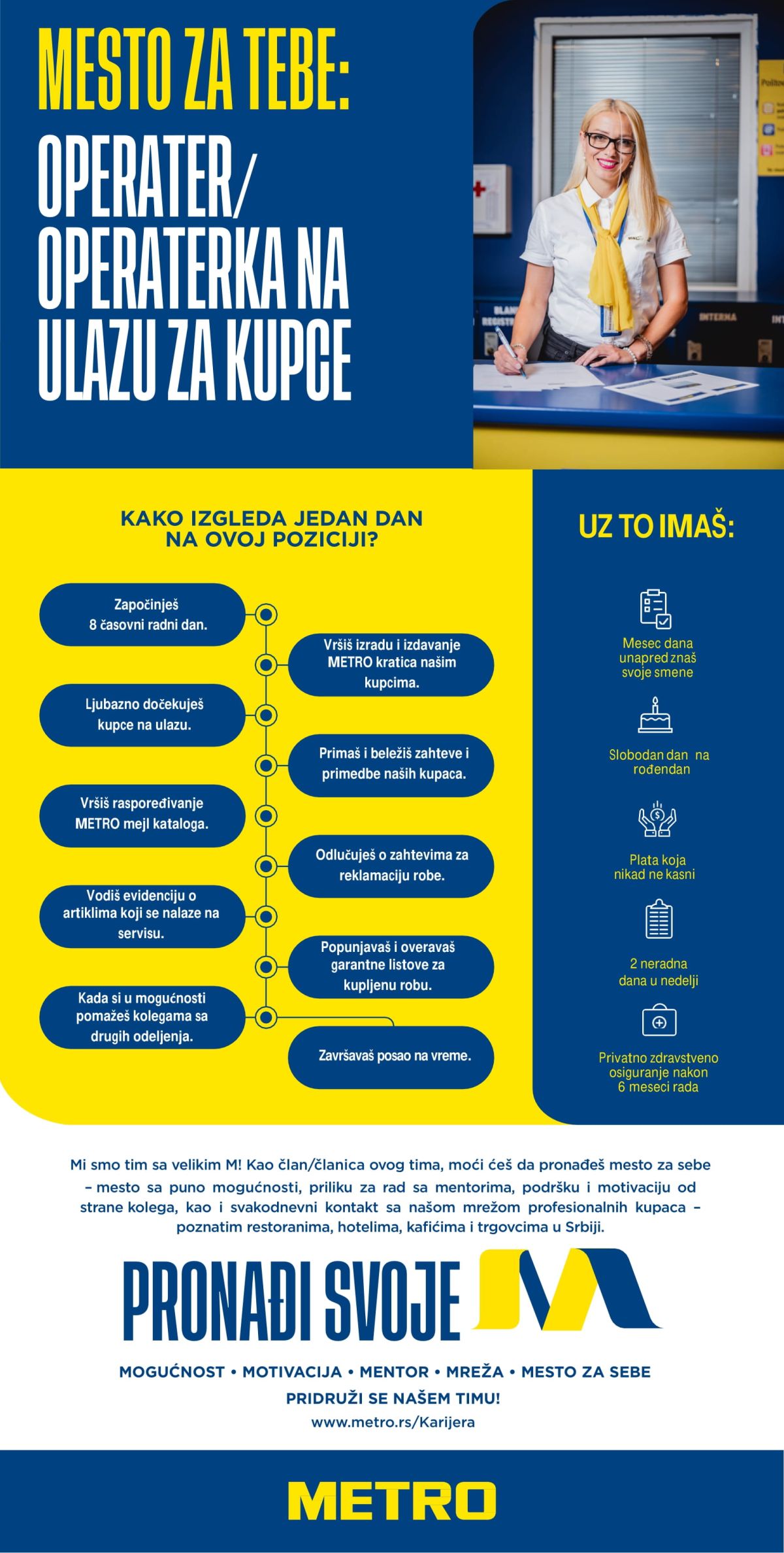 METRO pripada internacionaloj METRO AG Grupi, koja posluje u više od 30 zemalja sa blizu 700 radnji širom sveta. Naša misija je da podržimo biznise malih i srednjih preduzetnika, pre svega iz HoReCa i trgovinskog sektora, što nas čini jedinsvenim na tržištu u Srbiji od Palića do Niša. Skoro 20…