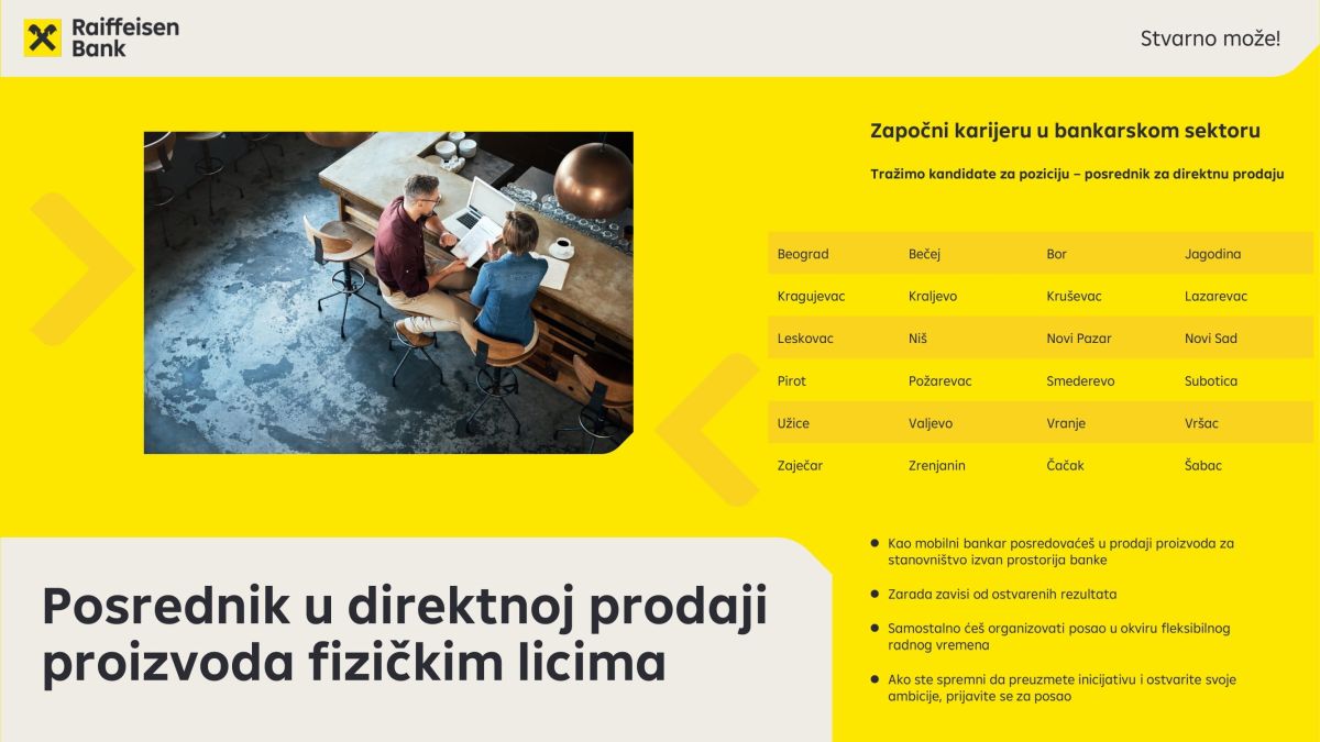 Raiffeisen banka je jedna od vodećih banaka u Srbiji. Već 22 godine poslujemo na domaćem tržištu i od prvog dana smo prepoznati kao pouzdan partner i kvalitetan poslodavac. Deo smo Raiffeisen Bank International, jedne od najvećih bankarskih grupacija u Srednjoj i Istočnoj Evropi. Preko 2.000 zaposlenih danas čini tim Raiffeisen banke, u okviru široke mreže sa preko 80 poslovnica širom Srbije i centralom banke u Beogradu. Raiffeisen sistem u Srbiji pored Raiffeisen banke obuhvata i više…