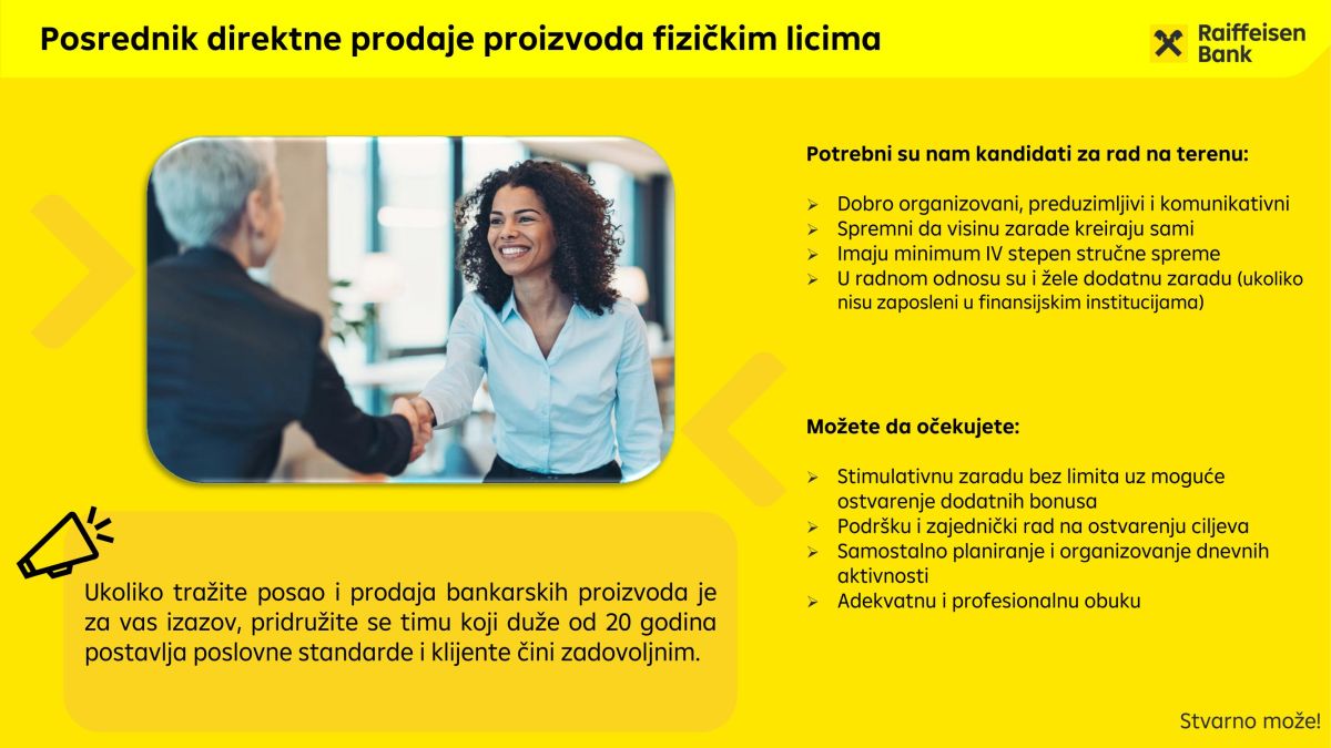 Raiffeisen banka je jedna od vodećih banaka u Srbiji. Već 25 godina poslujemo na domaćem tržištu i od prvog dana smo prepoznati kao pouzdan partner i kvalitetan poslodavac. Deo smo Raiffeisen Bank International, jedne od najvećih bankarskih grupacija u Srednjoj i Istočnoj Evropi. Preko 2.000 zaposlenih danas čini tim Raiffeisen banke, u okviru široke mreže sa preko 80 poslovnica širom Srbije i centralom banke u Beogradu. Raiffeisen sistem u Srbiji pored Raiffeisen banke obuhvata i više…