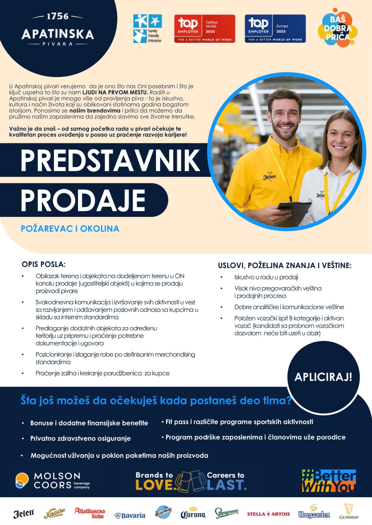 Apatinska pivara, Molson Coors Beverage Company Apatinska pivara, deo jedne od najvećih globalnih pivarskih kompanija, Molson Coors Beverage Company, jedan je od lidera u proizvodnji piva na domaćem tržištu. Nastala davne 1756. godine, Apatinska pivara je ujedno i najstarija pivara koja posluje u okviru ove grupacije. Danas Molson Coors Beverage Company u svetu broji oko 17.600 zaposlenih, dok nas je u Srbji oko 700. Pored tržišta Kanade, Sjedinjenih Američkih Država, Ujedinjenog Kraljevstva i…