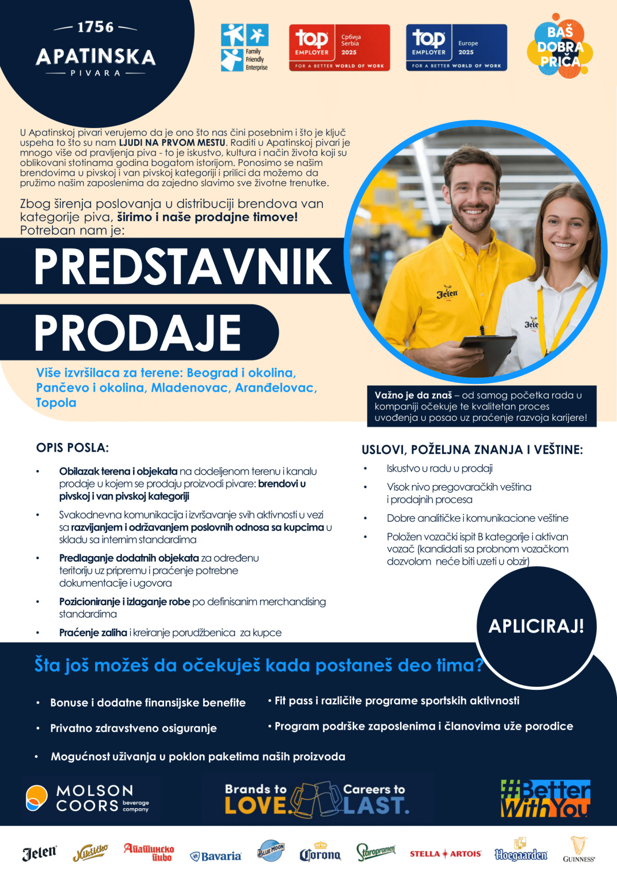 Apatinska pivara, Molson Coors Beverage Company Apatinska pivara, deo jedne od najvećih globalnih pivarskih kompanija, Molson Coors Beverage Company, jedan je od lidera u proizvodnji piva na domaćem tržištu. Nastala davne 1756. godine, Apatinska pivara je ujedno i najstarija pivara koja posluje u okviru ove grupacije. Danas Molson Coors Beverage Company u svetu broji oko 17.600 zaposlenih, dok nas je u Srbji oko 700. Pored tržišta Kanade, Sjedinjenih Američkih Država, Ujedinjenog Kraljevstva i…