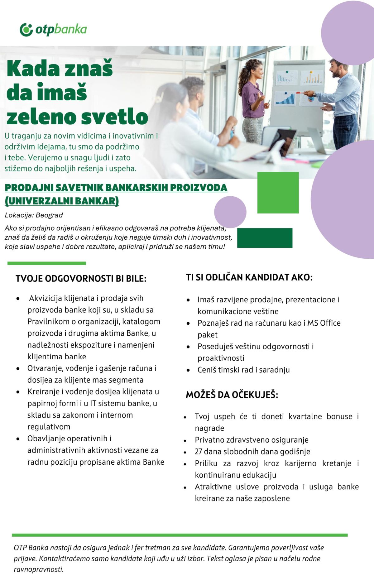 Prodajni savetnik bankarskih proizvoda (Univerzalni bankar)