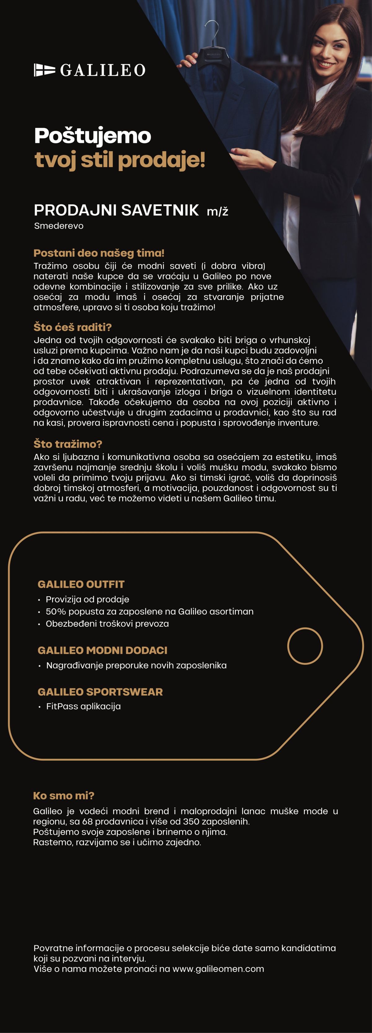 Napomena: Poslovi.infostud.com ne vrši posredovanje u zapošljavanju u Srbiji, niti u inostranstvu. Postupak selekcije i odabira kandidata je u nadležnosti poslodavca, a odredbe ugovora o radu predstavljaju direktan dogovor između poslodavca i zaposlenog. Svi pojmovi u oglasima, koji su upotrebljeni u muškom rodu, odnose se bez diskriminacije i na osobe ženskog pola i obrnuto, osim ukoliko specifičnim zahtevima posla nije drugačije propisano.