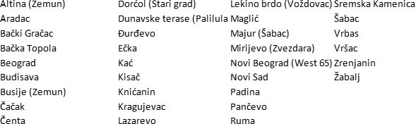 Beograd, Zrenjanin, Odžaci, Bačka Topola, Novi Sad + 13 mesta Prikaži sve lokacije