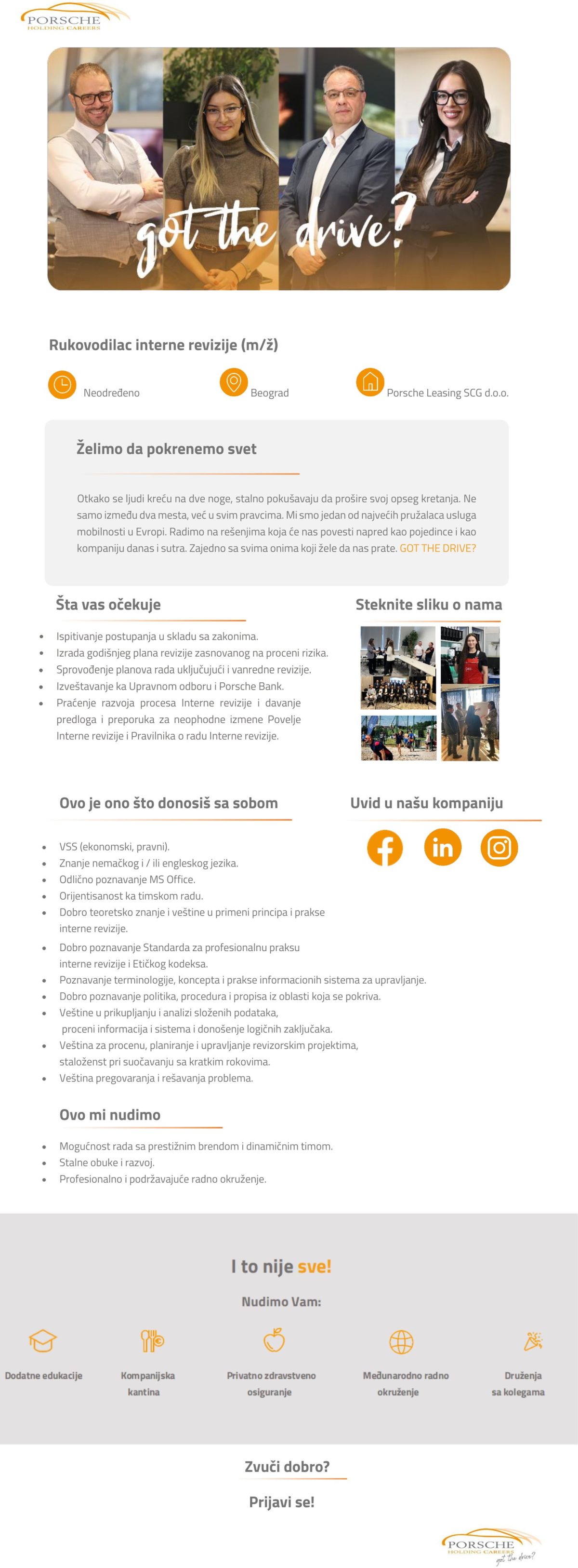 Napomena: Poslovi.infostud.com ne vrši posredovanje u zapošljavanju u Srbiji, niti u inostranstvu. Postupak selekcije i odabira kandidata je u nadležnosti poslodavca, a odredbe ugovora o radu predstavljaju direktan dogovor između poslodavca i zaposlenog. Svi pojmovi u oglasima, koji su upotrebljeni u muškom rodu, odnose se bez diskriminacije i na osobe ženskog pola i obrnuto, osim ukoliko specifičnim zahtevima posla nije drugačije propisano.