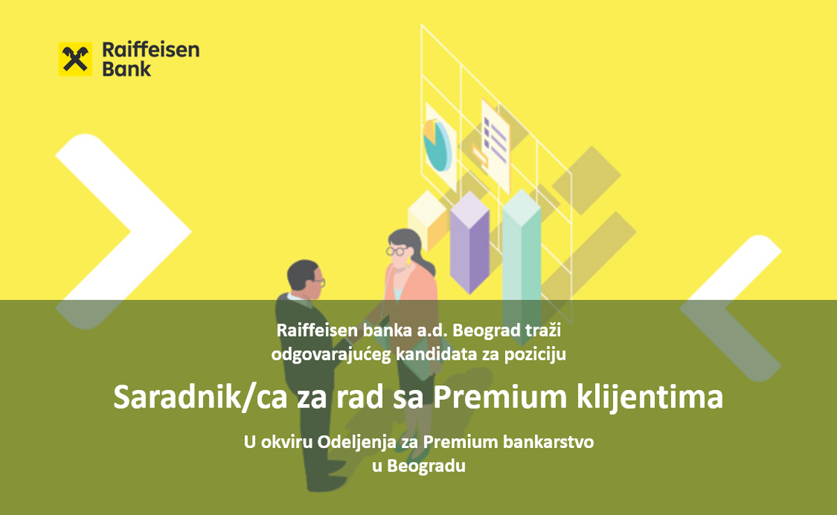 Raiffeisen banka a.d. Beograd je jedna od vodećih banaka po kvalitetu usluge koju pruža svojim klijentima širom Srbije. U vreme intenzivnih promena i stvaranja novog bankarskog okruženja koje nameće imperativ razvoja i unapređenja digitalnih usluga, usluga Premium bankarstva je nastoji da zadovolji sve potrebe posebnog segmenta klijenata kroz holistički pristup i najsavremeniji način pružanja bankarske usluge, uz korišćenje video sastanaka, digitalne razmene dokumenata i upotrebu digitalnog potpisa.