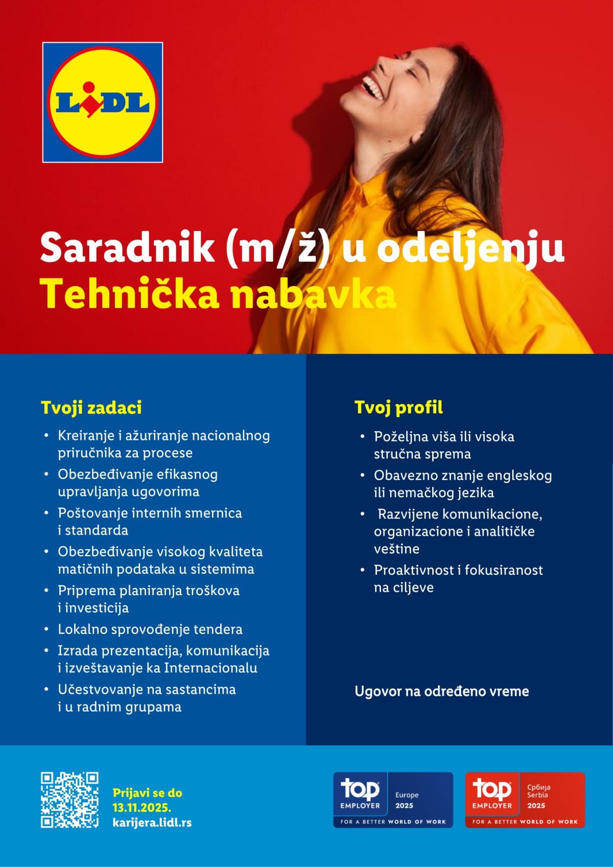 Kompanija Lidl, kao deo nemačke Švarc grupe (Schwarz Gruppe), predstavlja jednog od vodećih prehrambenih trgovinskih lanaca u Nemačkoj i Evropi. Posluje u 32 zemlje širom sveta, sa oko 12.200 prodavnica, kao i više od 220 logističkih centara i skladišta u 31 zemlji sveta. Lidl je u Srbiji svoje prve prodavnice otvorio u oktobru 2018. godine i trenutno ima 78 prodavnica u 45 gradova širom zemlje i 2 logistička centra. Imamo dugoročne planove sa ciljem da potrošačima širom Srbije ponudimo…