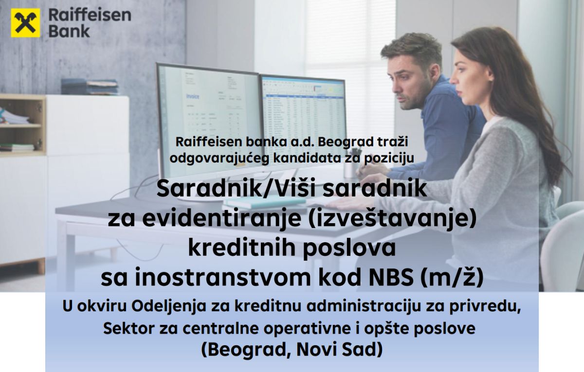 Raiffeisen banka je jedna od vodećih banaka u Srbiji. Već 22 godine poslujemo na domaćem tržištu i od prvog dana smo prepoznati kao pouzdan partner i kvalitetan poslodavac. Deo smo Raiffeisen Bank International, jedne od najvećih bankarskih grupacija u Srednjoj i Istočnoj Evropi. Preko 2.000 zaposlenih danas čini tim Raiffeisen banke, u okviru široke mreže sa preko 80 poslovnica širom Srbije i centralom banke u Beogradu. Raiffeisen sistem u Srbiji pored Raiffeisen banke obuhvata i više…