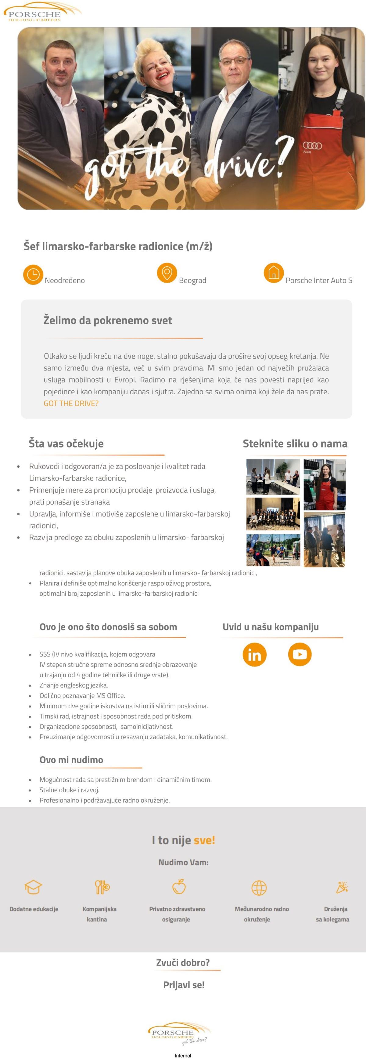 Napomena: Poslovi.infostud.com ne vrši posredovanje u zapošljavanju u Srbiji, niti u inostranstvu. Postupak selekcije i odabira kandidata je u nadležnosti poslodavca, a odredbe ugovora o radu predstavljaju direktan dogovor između poslodavca i zaposlenog. Svi pojmovi u oglasima, koji su upotrebljeni u muškom rodu, odnose se bez diskriminacije i na osobe ženskog pola i obrnuto, osim ukoliko specifičnim zahtevima posla nije drugačije propisano.