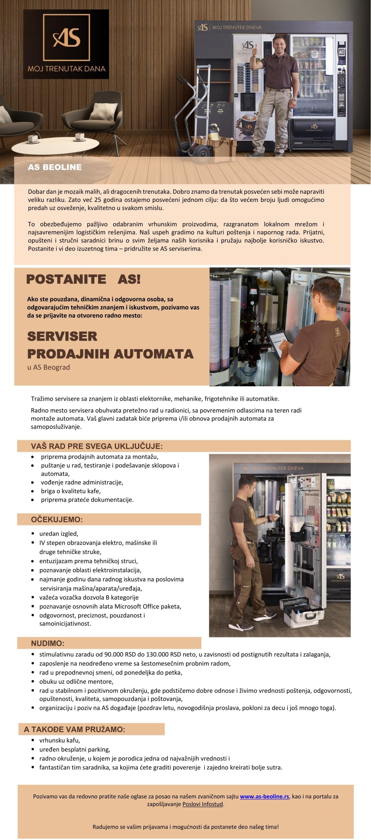 Mi smo kompanija koja pažljivo i odgovorno bira korake u budućnost. Svoju priču pišemo od 2000. godine i sa svojim bogatim iskustvom i znanjem neprestano unapređujemo naše poslovne procese. PRIČA O SREĆI Već 21 godinu pišemo Beoline priču o sreći i brinemo za vaše trenutke dana. Sklapamo poslove i povezujemo. Vašim dnevnim pauzama dajemo smisao. Otkrivamo prijateljstva. Olakšavamo čekanje. Neutralizujemo pospanost. Pokrećemo i brinemo o kvalitetu života van vašeg doma. Mi smo preduzeće, koje…