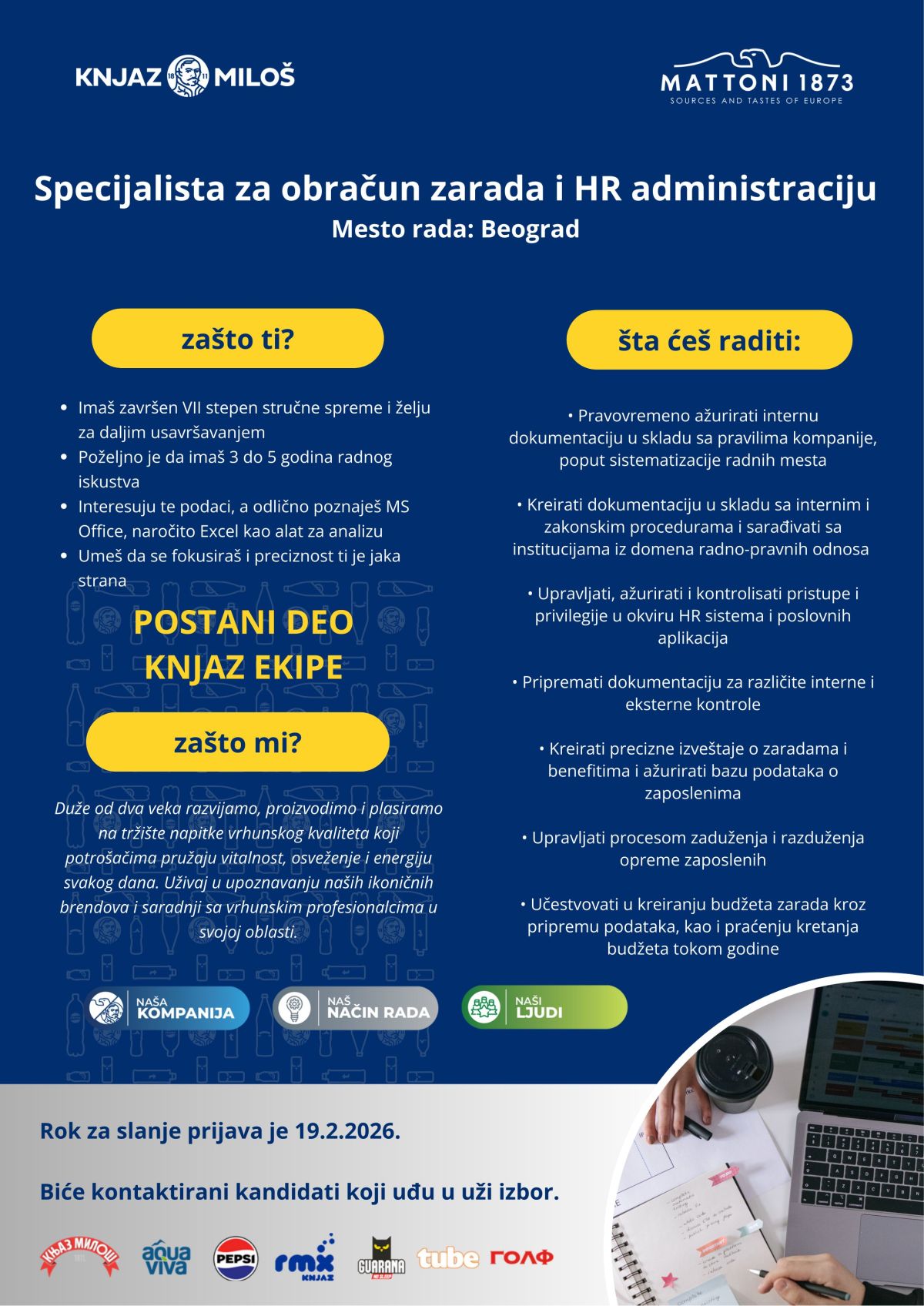 Mi smo Knjaz Miloš. Ponosno autentični i fokusirani na druge. Jedan smo od najvećih proizvođača mineralne vode, bezalkoholnih i energetskih napitaka u regionu. Razvijamo, proizvodimo i plasiramo na tržište napitke vrhunskog kvaliteta koji potrošačima pružaju vitalnost, osveženje i energiju svakog dana. Brinemo o drugima, sagledavamo stvari i „iz tuđih cipela“, vodeći se činjenicama i empatijom. Sve to, na temeljima imena i tradicije duže od dva veka, sa jasnom vizijom budućnosti. Gradimo…