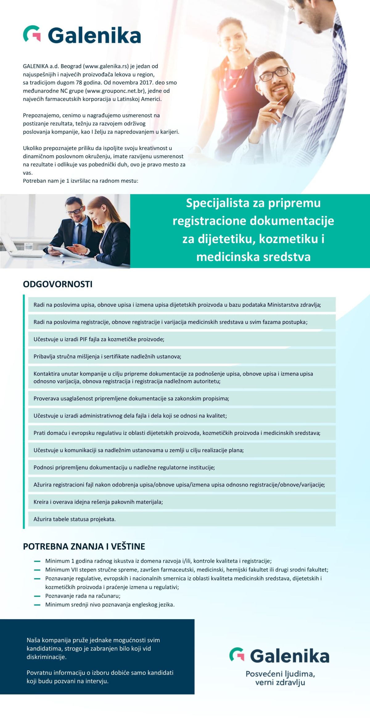 Specijalista za pripremu registracione dokumentacije za dijetetiku, kozmetiku i medicinska sredstva