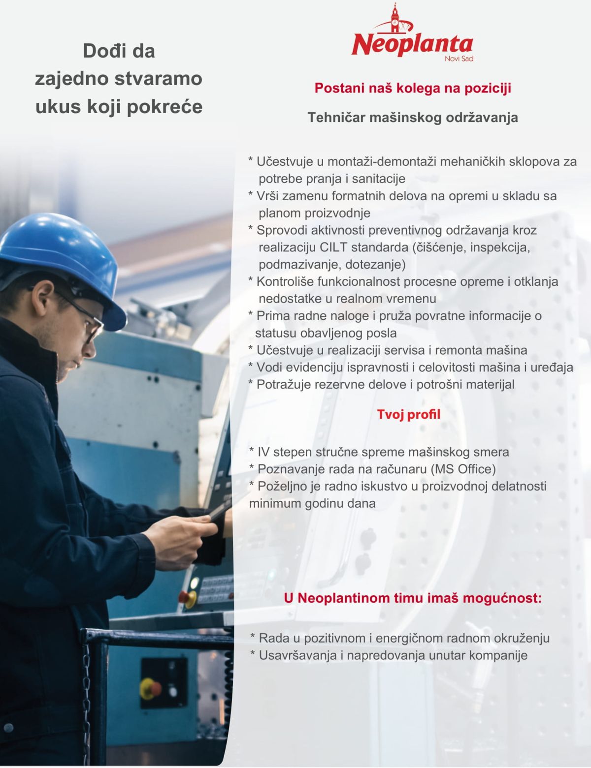 Zamislite kompaniju sa tradicijom dužom od 130 godina, koja je iz male radionice iz 1885. prerasla u lidera u proizvodnji mesnih delikatesa. To je Neoplanta – spoj autentične vojvođanske tradicije i savremenog poslovanja. Danas nas je preko 500 i zajedno čuvamo originalne recepture, ali i stvaramo nove ukuse. Naš tim pokreće posvećenost, znanje i želja za stalnim razvojem – u radnoj atmosferi koja više liči na porodicu nego na korporaciju. U našoj fabrici u Novom Sadu proizvode se vrhunski…