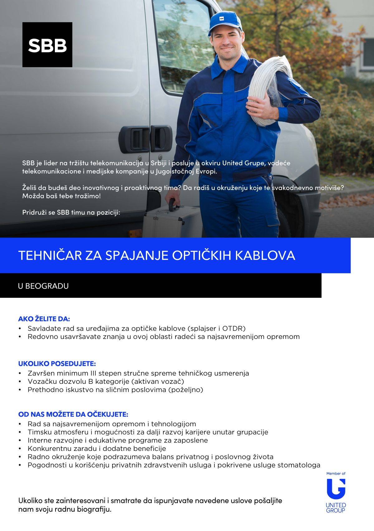Napomena: Poslovi.infostud.com ne vrši posredovanje u zapošljavanju u Srbiji, niti u inostranstvu. Postupak selekcije i odabira kandidata je u nadležnosti poslodavca, a odredbe ugovora o radu predstavljaju direktan dogovor između poslodavca i zaposlenog. Svi pojmovi u oglasima, koji su upotrebljeni u muškom rodu, odnose se bez diskriminacije i na osobe ženskog pola i obrnuto, osim ukoliko specifičnim zahtevima posla nije drugačije propisano.