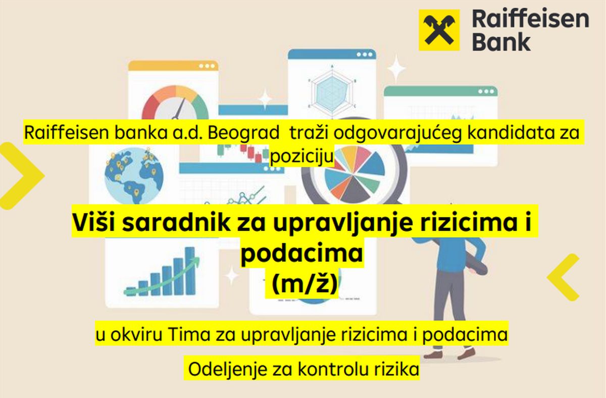 Raiffeisen banka je jedna od vodećih banaka u Srbiji. Već 25 godina poslujemo na domaćem tržištu i od prvog dana smo prepoznati kao pouzdan partner i kvalitetan poslodavac. Deo smo Raiffeisen Bank International, jedne od najvećih bankarskih grupacija u Srednjoj i Istočnoj Evropi. Preko 2.000 zaposlenih danas čini tim Raiffeisen banke, u okviru široke mreže sa preko 80 poslovnica širom Srbije i centralom banke u Beogradu. Raiffeisen sistem u Srbiji pored Raiffeisen banke obuhvata i više…