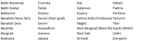 U sledećim mestima