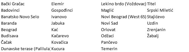Beograd, Čačak, Kać, Kovačica, Bački Petrovac + 10 mesta Prikaži sve lokacije