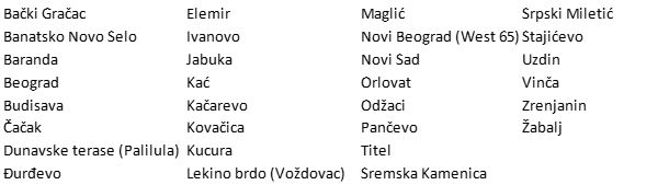Beograd, Odžaci, Pančevo, Opovo, Novi Sad + 9 mesta Prikaži sve lokacije